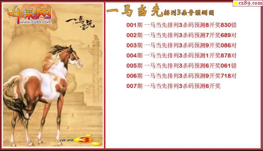 > 2026007期P3一马当先杀号预测图